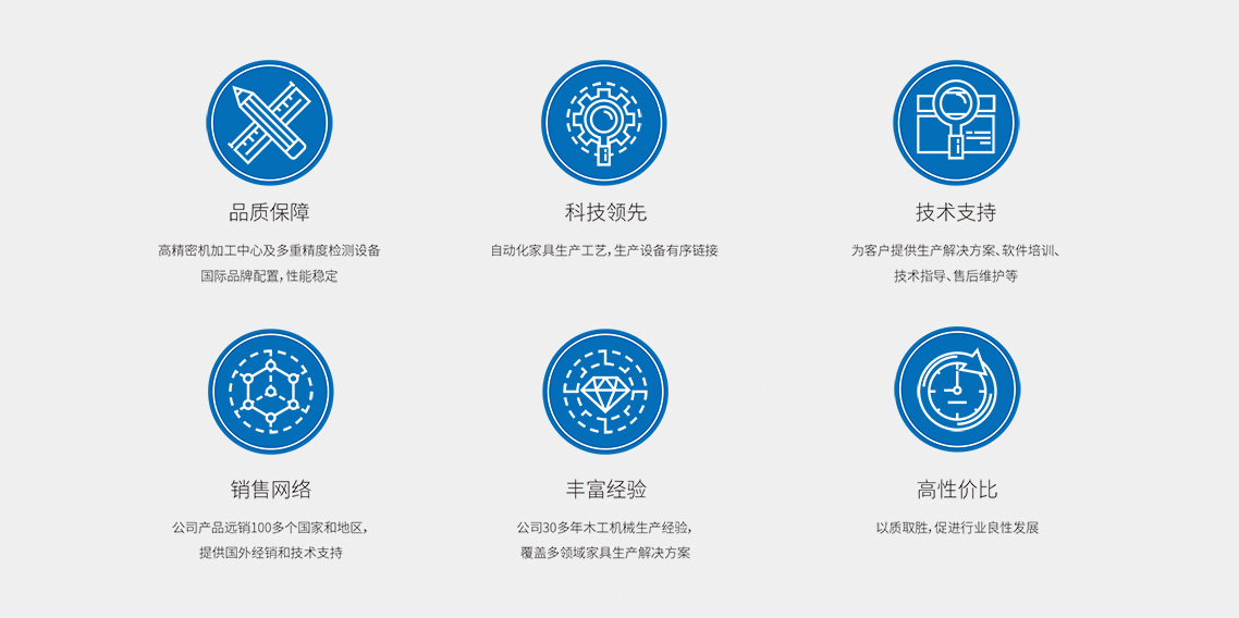 自公司誕生至今,西城偉業(yè)機械始終秉承“做百年企業(yè),立民族品牌”的公司宗旨,精準把控市場需求的同時,不斷完善升級核心產品,以自動化、數控化、智能化的中高端產品作為公司的全新戰(zhàn)略方向。經過多年潛心發(fā)展,其產品品質已具有國際水準,公司現已成為中國板式家具智造領域的創(chuàng)新領導品牌。